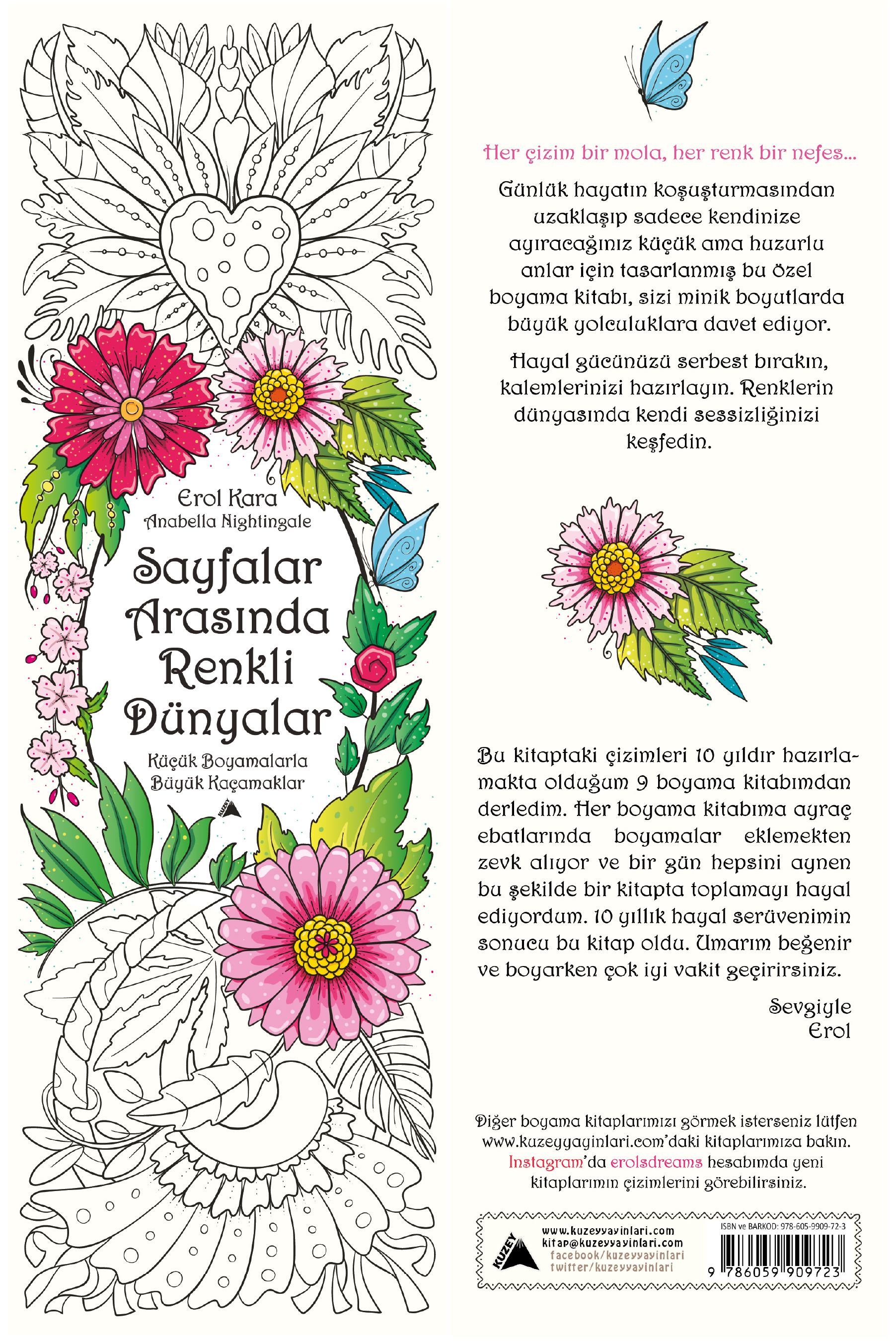 Bu kitaptaki çizimleri 10 yıldır hazırlamakta olduğum 9 boyama kitabımdan derledim. Her boyama kitabıma ayraç ebatlarında boyamalar eklemekten zevk alıyor ve bir gün hepsini aynen bu şekilde bir kitapta toplamayı hayal ediyordum. 10 yıllık hayal serüvenimin sonucu bu kitap oldu. Umarım beğenir ve boyarken çok iyi vakit geçirirsiniz.